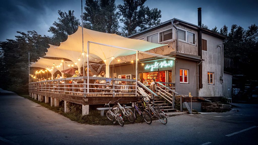 Auch Kanus werden hier vermietet, und wer etwas tiefer ins Gelbörsl greifen will, kann sich sogar mit dem Motorboot vom Zentum Wiens abholen lassen.