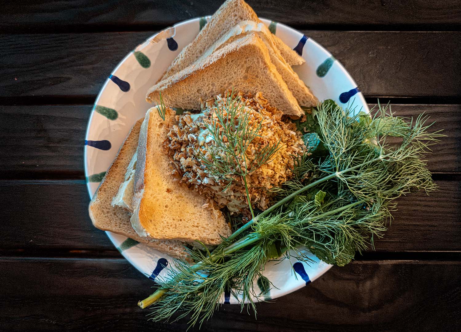 - Larb Sien – eine Fusion der beiden Konzepte larb sien aus Laos und beef tartare aus Frankreich: einerseits rohes, gehacktes Rindfleisch mit Galgant, Zitronengras, Chili, Fischsauce, knusprig gerösteten Reiskörnern und jeder Menge frischen Kräutern wie in Laos und Nordthailand – andererseits mit hausgemachter Mayo und Toast wie in Frankreich oder Belgien. Und diese Fusion ist extrem gut gelungen – die Kombination aus knuspriger Umhüllung und saftig weichem Inneren ist sensationell!