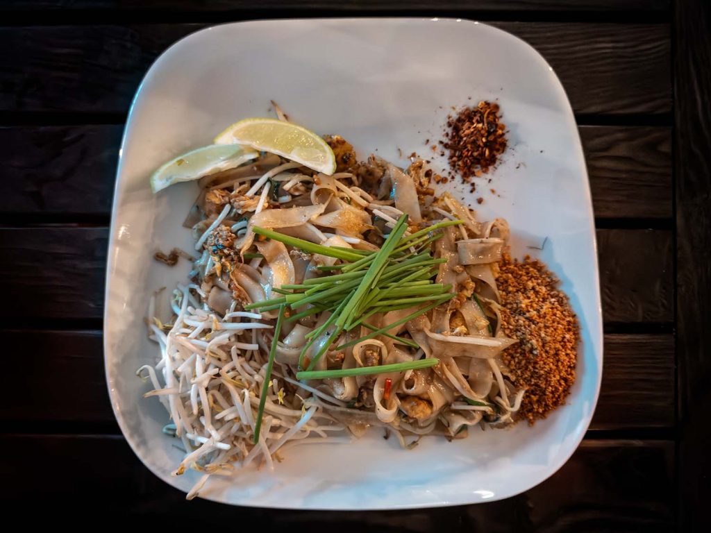 - Phat Thai – quasi das thailändische Nationalgericht aus gebratenen Reisnudeln, hier mit Tofu serviert.